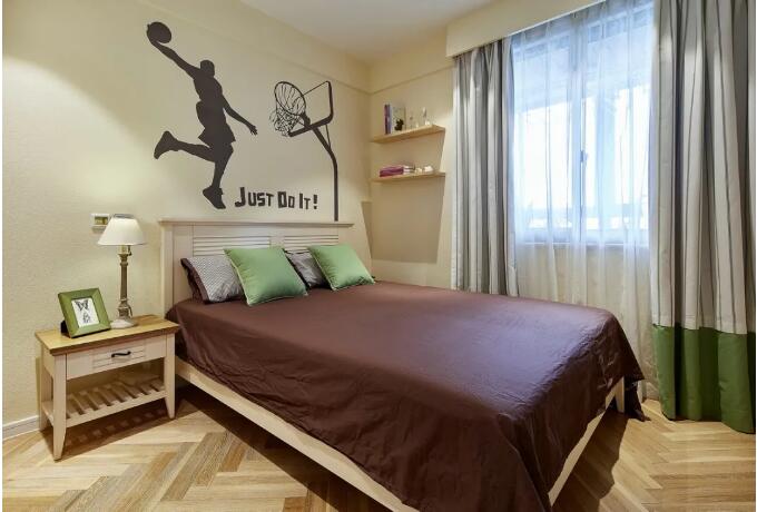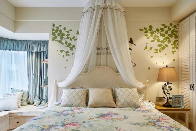 主臥有一個轉(zhuǎn)角L型的飄窗,布置得非常的溫馨