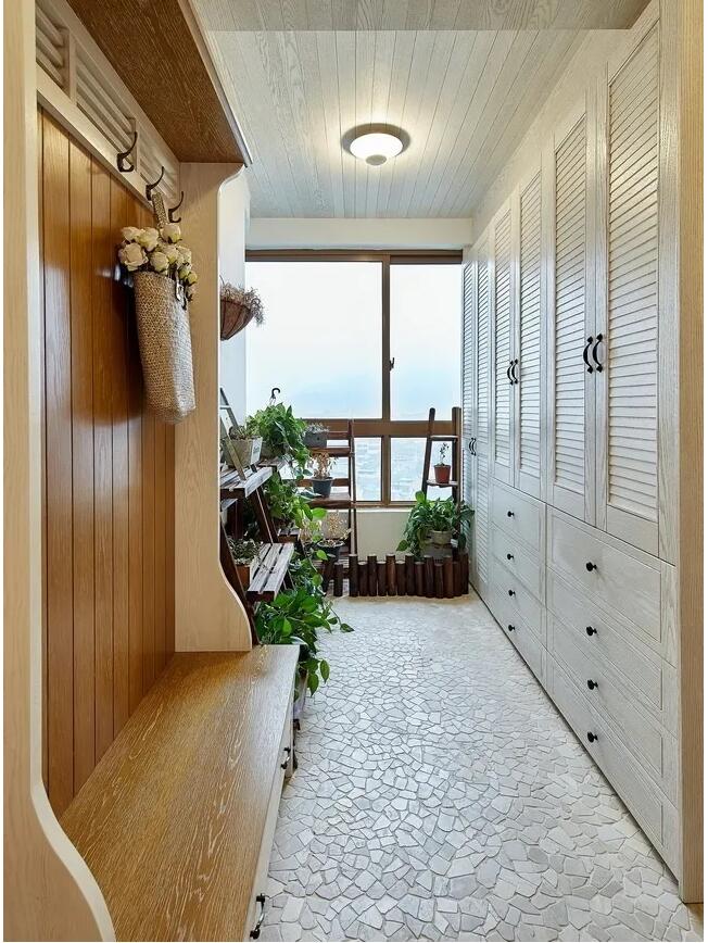 獨立的且足夠?qū)挸ǖ囊粋€家居玄關(guān),經(jīng)過巧妙的設(shè)計,終被打造成了一個花園式的家居入戶玄關(guān)。一側(cè)為大大的玄關(guān)收納柜,而另一側(cè)則打造了一個多功能型的換鞋區(qū);而靠窗的位置則規(guī)劃出一個小小的花園區(qū)。像這種集美觀與實用于一體的花園式玄關(guān)真的是美得讓人移不開眼!